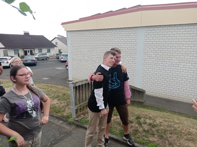 Wir verabschieden uns von Jonas, Luca und Amy. Jonas und Luca starten ins Berufsleben. Amy wechselt an eine andere Schule. Wir sagen Auf Wiedersehen und Dankeschön zu den Teilhabeassistenzen Frau Lenkheit, Frau Özköse und Frau Brück sowie zu den FSJlern Frau Ritter und Herr Wolf.